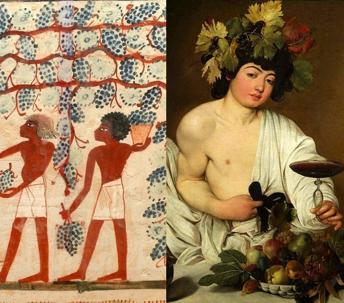 Per gli Egizi bere il vino significava nutrirsi delle divinità. Irrigavano le viti e non appena gli acini di uva raggiungevano una certa maturazione, raccoglievano i grappoli per poi pigiarli. Filtravano poi il mosto con delle tele dalle quali veniva tutto travasato in altri recipienti.