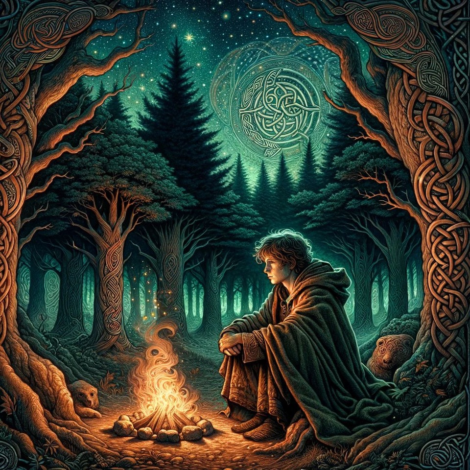 L’altra cosa che non riusciva a capire era lo stato di paura che provava nel viaggiare da solo nella foresta, uno stato di paura che di notte diventava quasi paralizzante. Ricordava bene quando aveva incontrato il giovane allievo molti anni prima: lui era un giovane ragazzino che girava tutto solo tra i boschi alla ricerca del Saggio Druido. Ricordava di non aver avuto nessuna paura in quei momenti e si chiedeva come fosse possibile che adesso, che aveva acquisito tantissime conoscenze, fosse più spaventato di quanto fosse allora, quando, poco più che bambino, affrontava i pericoli della foresta senza alcun timore. Questi erano i suoi pensieri mentre camminava senza meta verso il suo Wyrd.